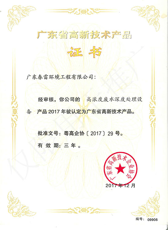 實用新型專利證書-高濃度有機廢水可生化處理集成設備