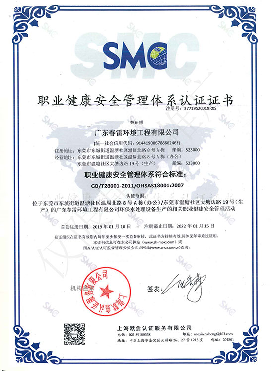 職業健康香蕉国产在线视频安全管理體係認證證書